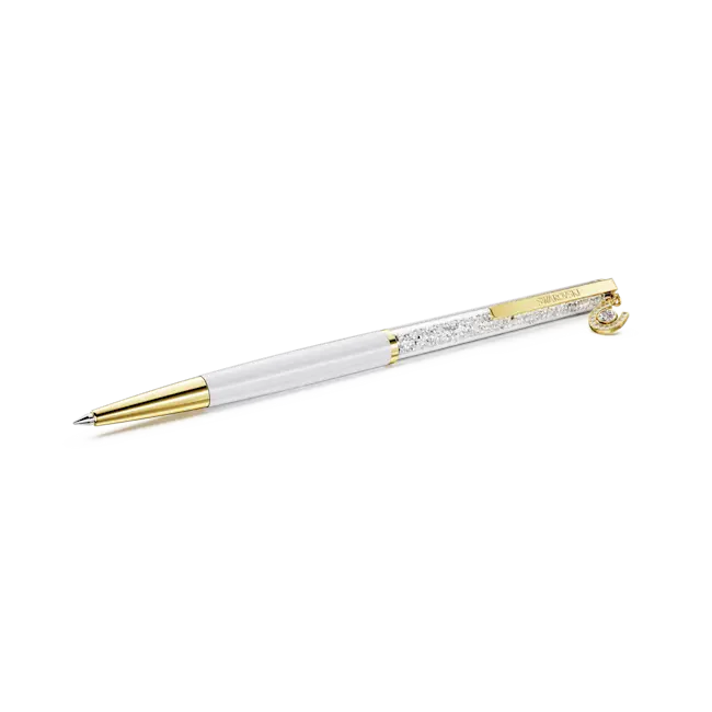 The slimline ballpoint pen is filled with around 400 clear crystals, which are visible through the long transparent window. Along with a lacquered white barrel, the pen includes gold-tone finishing and a horseshoe charm, which has long been cherished across cultures as a symbol of protection and prosperity. Its timeless meaning makes this pen a thoughtful gift for many occasions, whether to wish someone success, celebrate a new beginning, or simply share a token of positivity and care. Refills of black and blue inks are available to purchase in Swarovski stores.