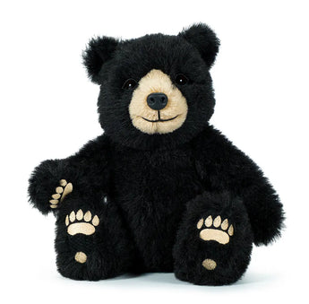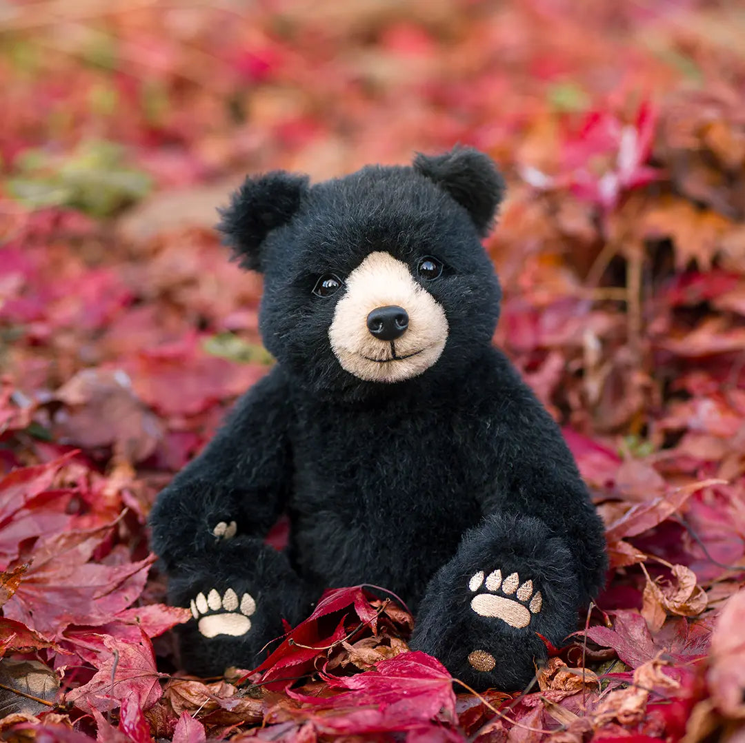 This friendly teddy bear is inspired by the real Canadian black bear who played an important role in the history of AA Milne's beloved Winnie The Pooh stories. Lovingly handmade from the softest jet-black alpaca plush, paired with a fawn-coloured muzzle, Winnipeg features embroidered detailing on her paws, captivating life-like eyes, and a cheerful smile that radiates personality and charm.