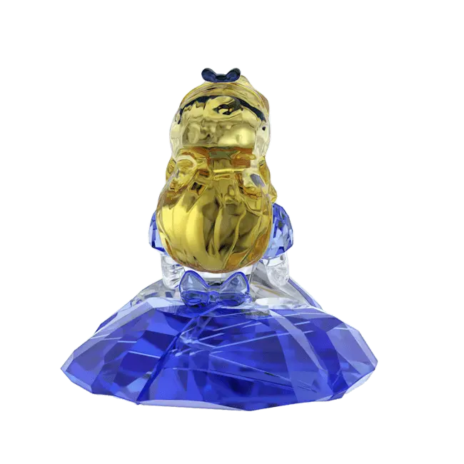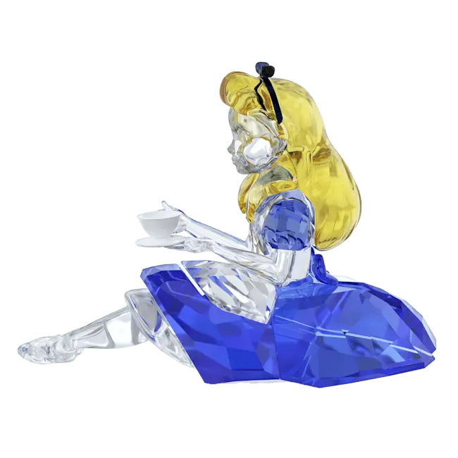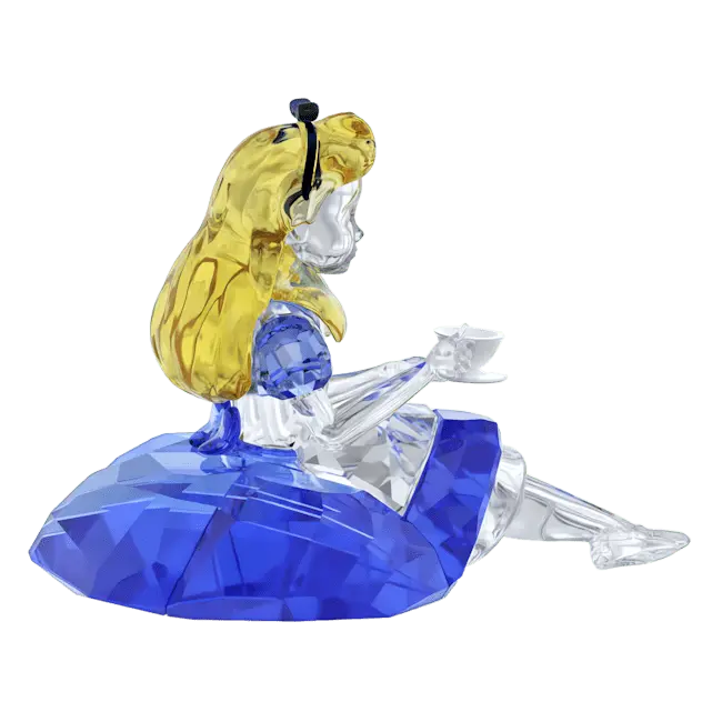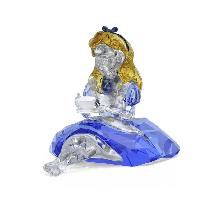 Imagination comes to life in this enchanting figurine inspired by Alice in Wonderland. Recalling one of the most iconic moments from the classic Disney tale, Alice is depicted as an uninvited guest at the Mad Hatter’s Tea Party. The crystallized design is crafted with 430 expertly cut facets and a variety of colors, including her deep blue dress and blonde hair. A perfect gift for friends with a curious streak. Decoration object. Not a toy. Not suitable for children under 15.