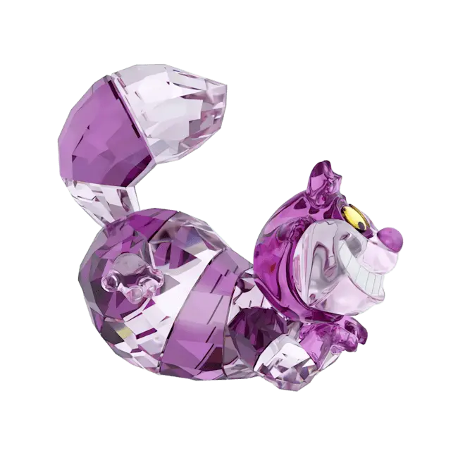 Take your own playful journey with a little inspiration from Alice in Wonderland, the classic Disney tale. This vibrant Cheshire Cat figurine grins from ear to ear, and thanks to Swarovski’s masterful savoir-faire, he appears to be almost floating, as if about to disappear. The crystallized design is expertly crafted with 536 facets and reveals an alluring array of pink and purple tones. A piece for your home that will always make you smile. Decoration object. Not a toy. Not suitable for children under 15.