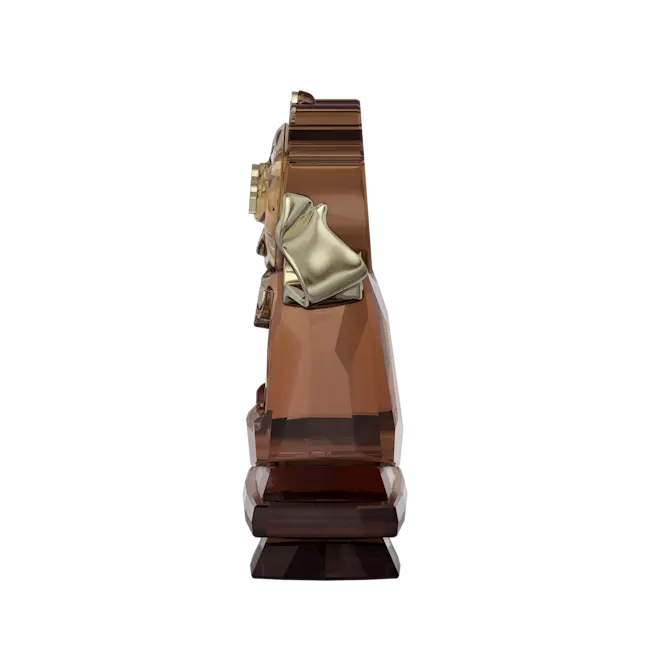 On the 35th anniversary of Beauty and the Beast, Swarovski celebrates Disney’s iconic tale of romance, fantasy, and music with a charming series of crystallized characters. This figurine is a tribute to Cogsworth, the embodiment of rule and decorum. The design is brought to life through 215 facets, along with glossy champagne gold-tone metal accents and expressive details that capture his personality. For those with a childlike spirit and love of nostalgia, this collectible figurine makes a wonderful gift. Decoration object. Not a toy. Not suitable for children under 15.
