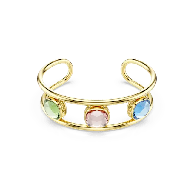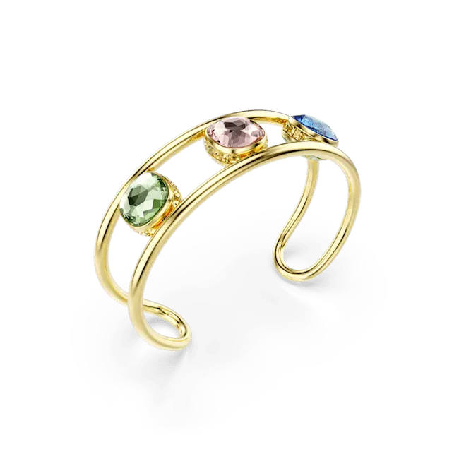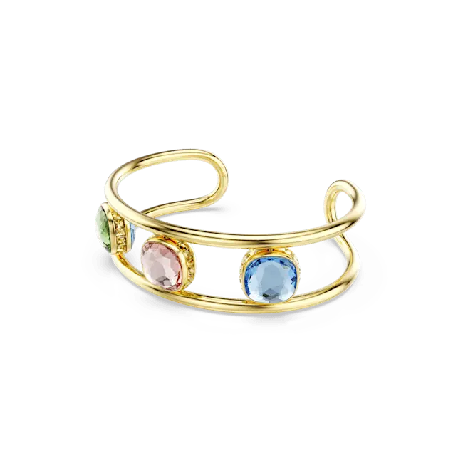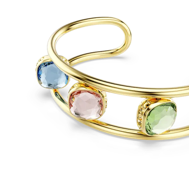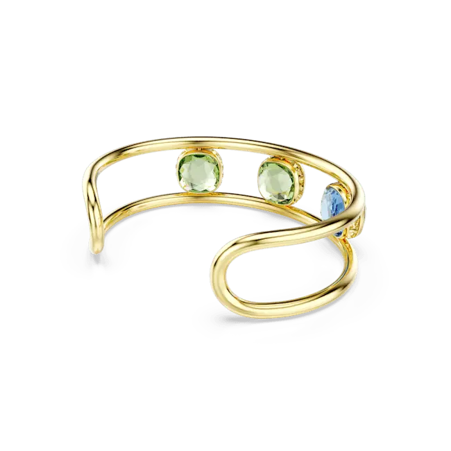 Swarovski Chroma Cuff Cushion Cut Green Gold-Tone Plated