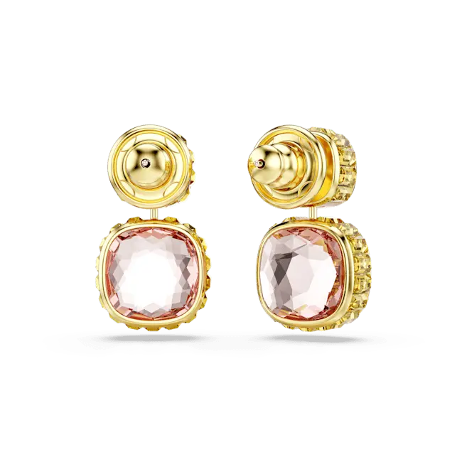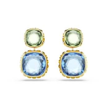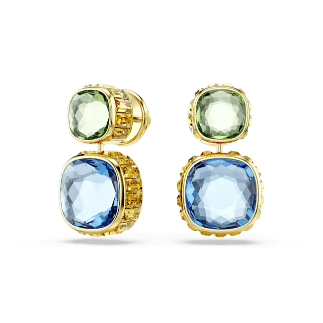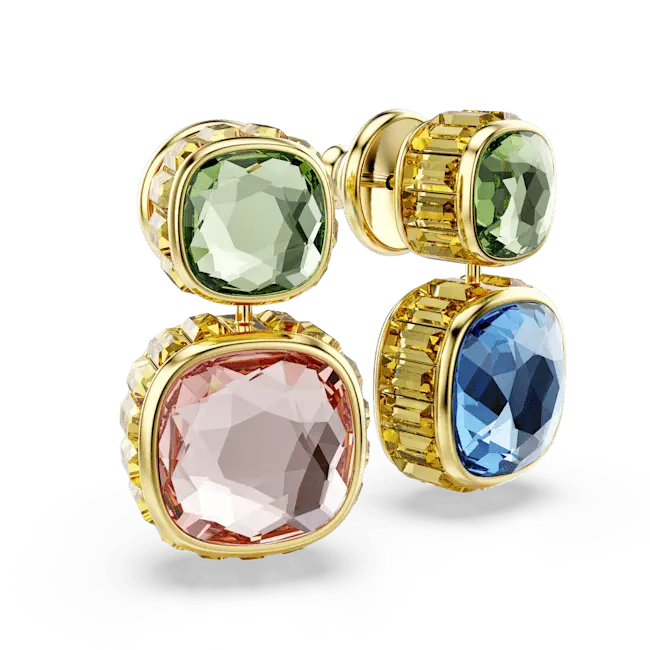 Swarovski Chroma Drop Earrings Cushion Cut Multicoloured Gold-Tone Plated