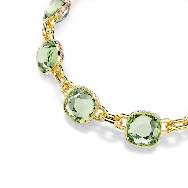 Swarovski Chroma Tennis Necklace Cushion Cut Gold-Tone Plated