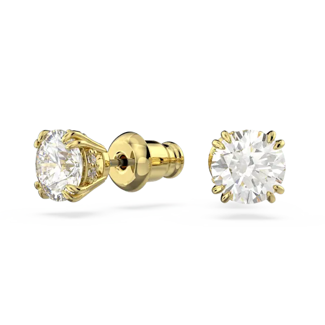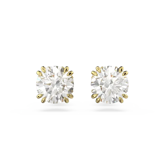 Swarovski Stilla Stud Earrings Round Cut White Gold-Tone Plated