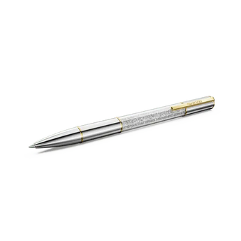 The Crystalline Lustre ballpoint pen combines creativity with luxury. This distinctive writing instrument features a round silver-tone barrel, as well as gold-tone accents that include a functional clip engraved with the Swarovski name. At its centre, this eye-catching design is illuminated with approximately 480 glittering crystals, each meticulously added using the iconic Crystalline technique. A standout addition to your desk or a distinctive gift for the writers in your life. Black and blue ink refills are available to buy in Swarovski stores.