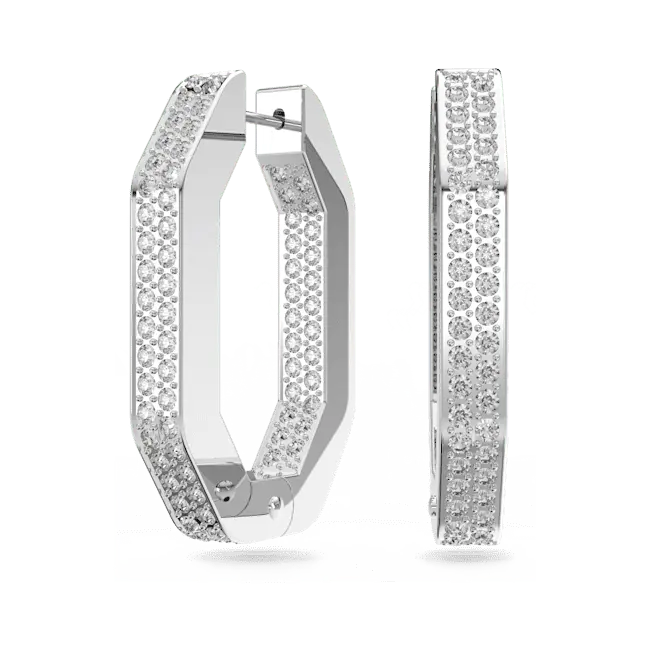 Swarovski Dextera Hoop Earrings Octagon Medium White Rhodium Plated
