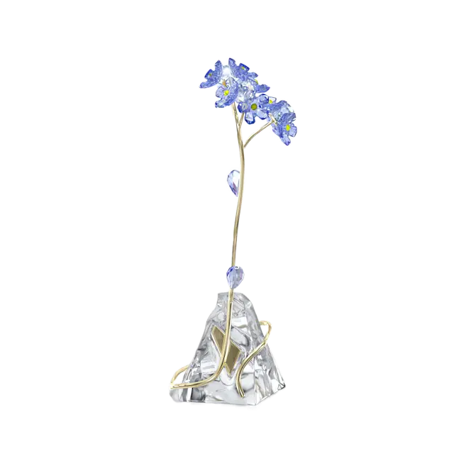 Crafted with meticulous skill, this stunning creation captures the beauty of one of nature’s most eye-catching flowers. The blue forget-me-not is produced with 876 light-catching facets, displayed atop a gold-tone metal stem that gracefully entwines across a natural unfaceted crystal base. Representing true love and faithfulness, this freestanding design would make a truly impressive gift for a loved one, serving as a permanent reminder that they’re in your thoughts. No vase or base required. Decoration object. Not a toy. Not suitable for children under 15.