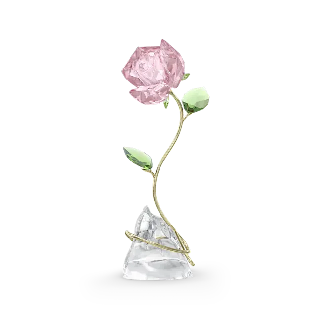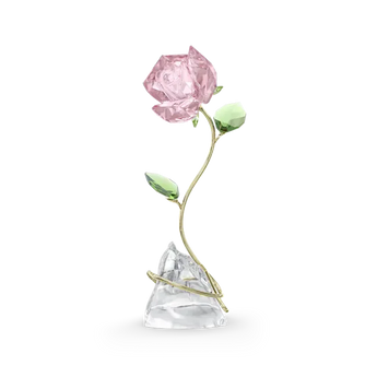 Inspired by one of nature’s most romantic symbols, this beautiful pink rose will bring the beauty of the outdoors into your home. The design is crafted with 150 facets forming the elegant petals and verdant green leaves, while the gold-tone metal stem gracefully entwines across a natural unfaceted crystal base. Representing everlasting love, this freestanding rose would make a meaningful gift for someone you adore. No vase or base required. Decoration object. Not a toy. Not suitable for children under 15.