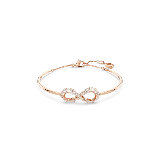 Infused with delicate beauty and symbolism, this Hyperbola bangle can be worn time and time again. The rose gold-tone plated design features a rigid band with an infinity motif, which is adorned with clear Swarovski Zirconia. A timeless piece that will effortlessly carry you from day to night.