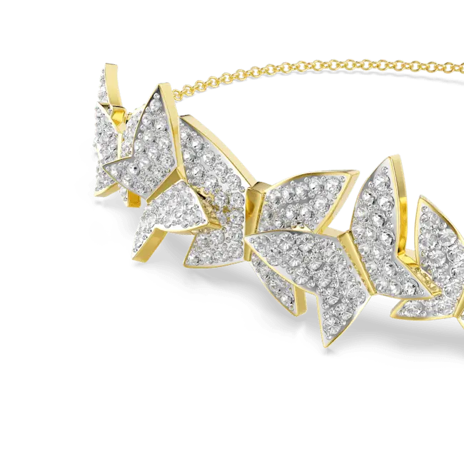 Inspired by fluttering butterflies, this elegant bracelet will create a unique finish to any look. Showcasing delicate butterfly motifs in shimmering pavé, this feminine, gold-tone plated design is finished with an easy-to-adjust sliding closure. A timeless addition to any jewellery box, why not gift a loved one – or yourself?