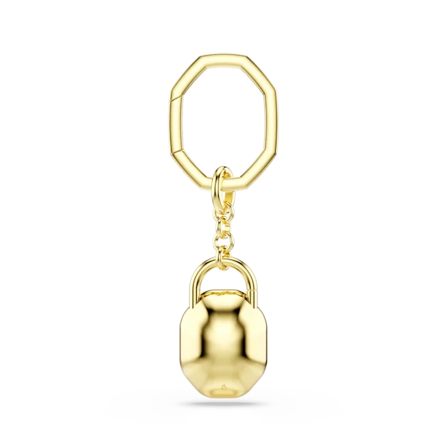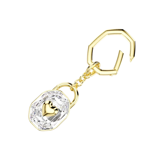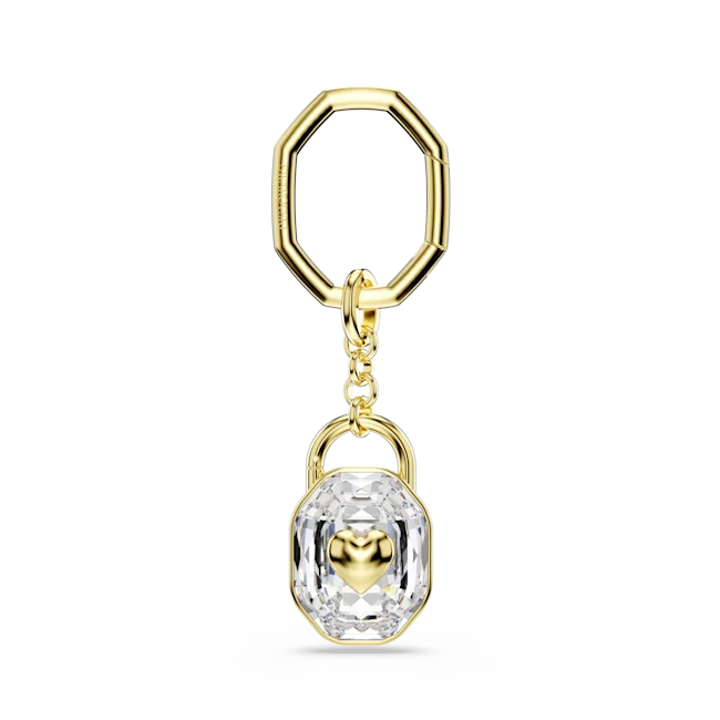 Crafted in the shape of a padlock, this gold-tone plated keyring symbolizes enduring love and unwavering friendship. The luxurious design features an octagonal link, connected to a large clear crystal with a heart at the centre. Gift this key ring to someone special to express your true feelings.