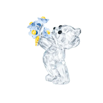 Swarovski's Kris Bear collection is loved all around the world for its cute, cheerful characters. Carefully crafted with 599 sparkling facets, this edition sweetly presents a bunch of forget-me-not flowers. Full of colour and emotion, it would make a meaningful gift for someone special. Decoration object. Not a toy. Not suitable for children under 15.