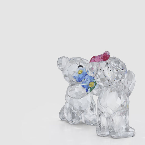 Love takes center stage in this romantic Kris Bear scene. Crafted with 913 facets, the story reveals a heartfelt moment between a Kris Bear couple, complete with a bright bouquet of blue flowers and a pink bow for vivid color. Gift these bears to someone special to express your own feelings of adoration. Decoration object. Not a toy. Not suitable for children under 15.