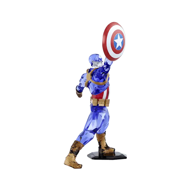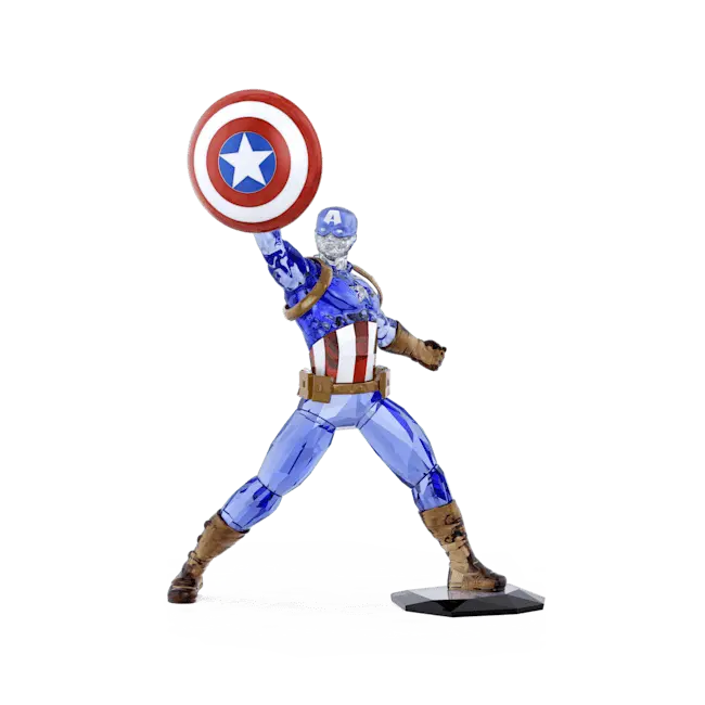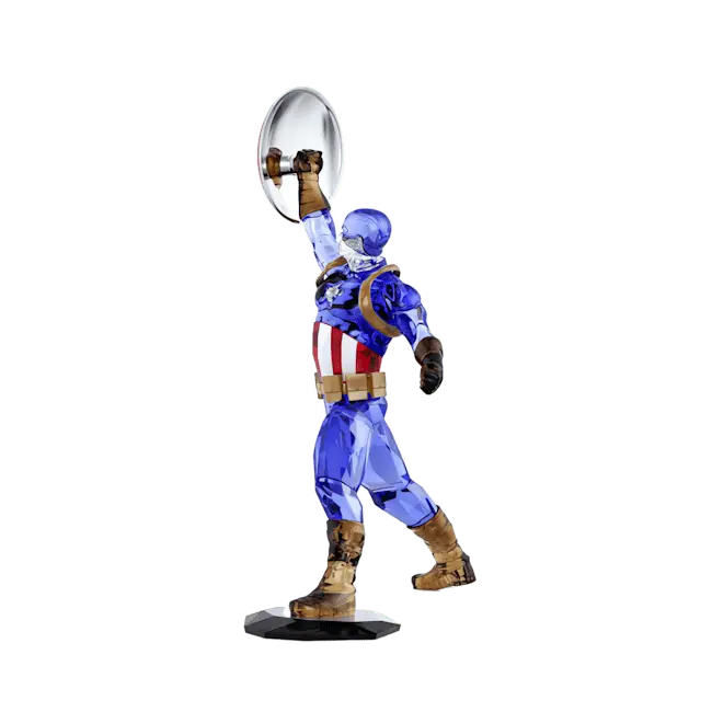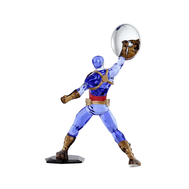Serving as a shining example of loyalty, strength, and resilience, Captain America is the ultimate Super Hero. To honor the legendary character in crystallized form, this dazzling figurine has been precisely cut with a superb standard of technical expertise. The dynamic design features 382 facets, each revealing Captain America’s most recognizable features, including his indestructible shield, known in the franchise to be made of rare vibranium. Own this collectible hero yourself and you’ll feel instantly empowered. Decoration object. Not a toy. Not suitable for children under 15.