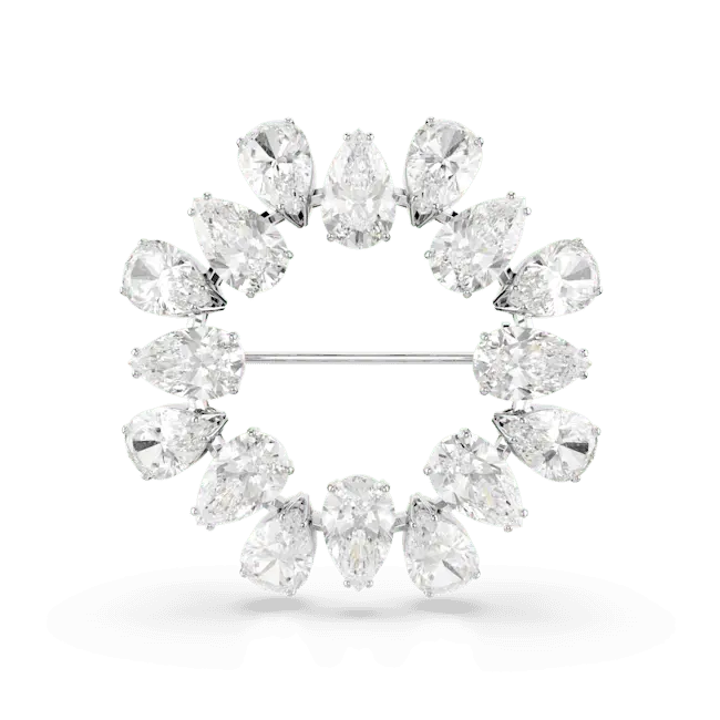 This radiant halo of light is the perfect accessory for illuminating your style. The rhodium plated design features a circle of pear-cut Swarovski Zirconia, presented in a clear hue with alternating directions for a stunning effect. Wear it alongside other pieces of Matrix jewellery to accentuate the elegance.