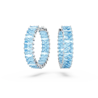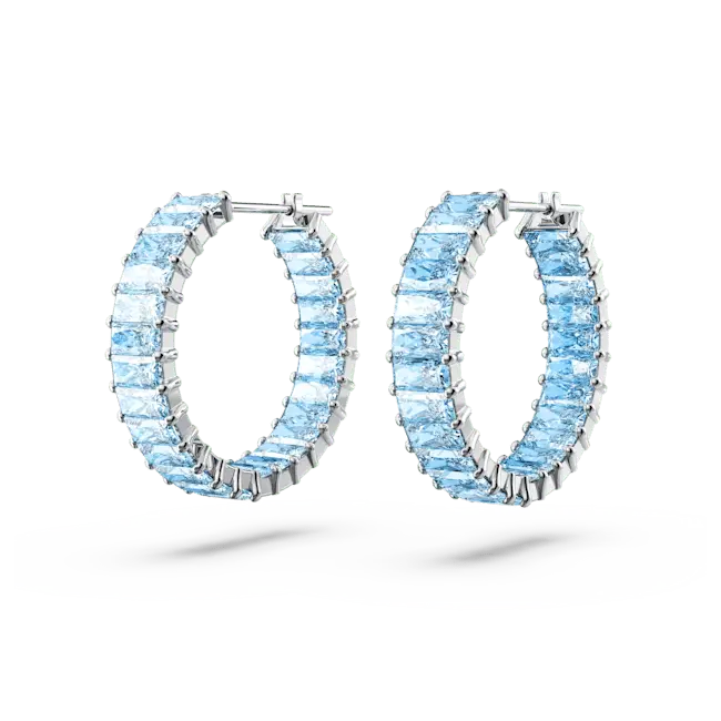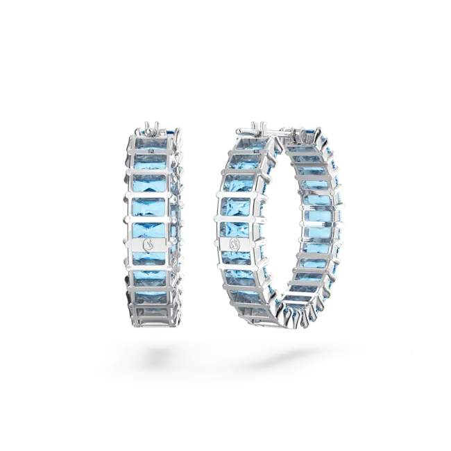 Swarovski Matrix Hoop Earrings Baguette Cut Blue Rhodium Plated
