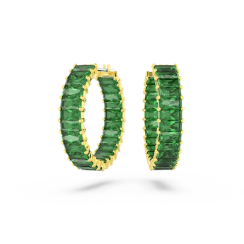 Swarovski Matrix Hoop Earrings Baguette Cut Green Gold-Tone Plated