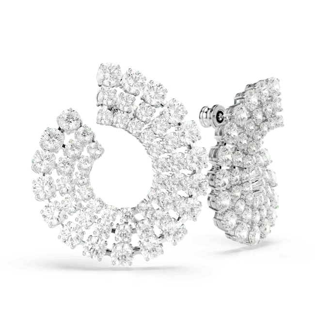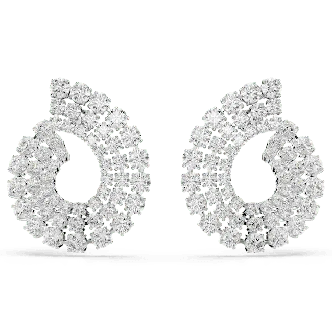 Decorate yourself in wonder with these spellbinding pierced earrings from the Matrix family. Each rhodium plated piece features three spirals of round-cut Swarovski Zirconia, presented in three different sizes for ultra glam. A stunning showcase of Swarovski’s mastery of light that will dramatically ignite any outfit you wear that can be paired with a matching brooch.