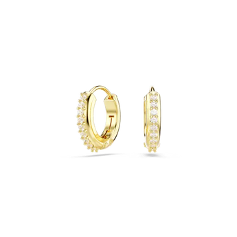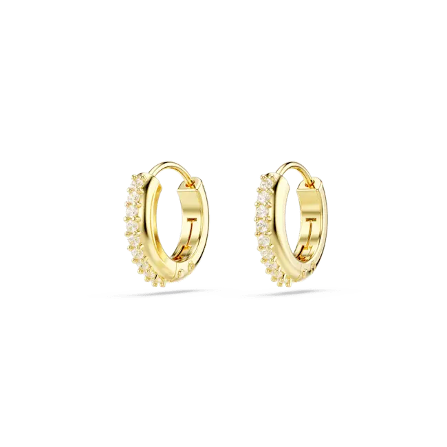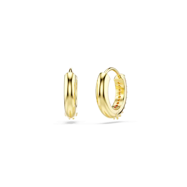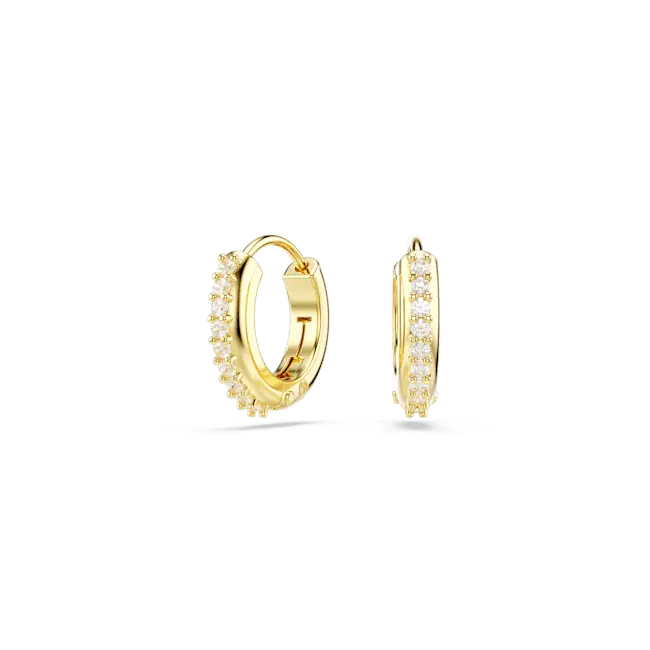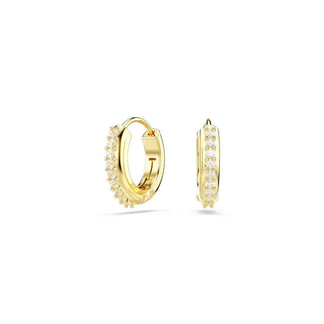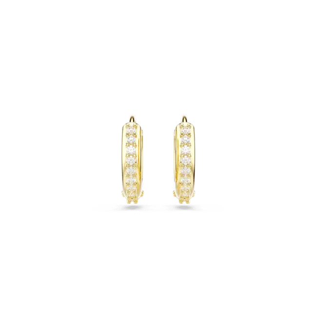 Ignite your style with these shimmering mini hoops. The pierced earrings are gold-tone plated and adorned with clear prong-set Swarovski Zirconia on the outer section. An effortless way to infuse your look with instant radiance.
