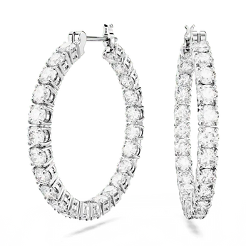 Swarovski Matrix Hoop Earrings Round Cut White Rhodium Plated