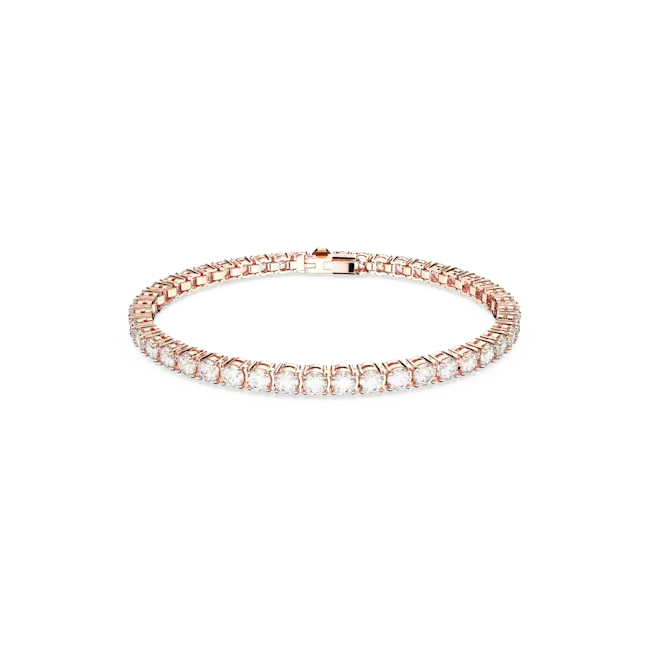 Swarovski Matrix Tennis Bracelet Round Cut White Rose Gold-Tone Plated