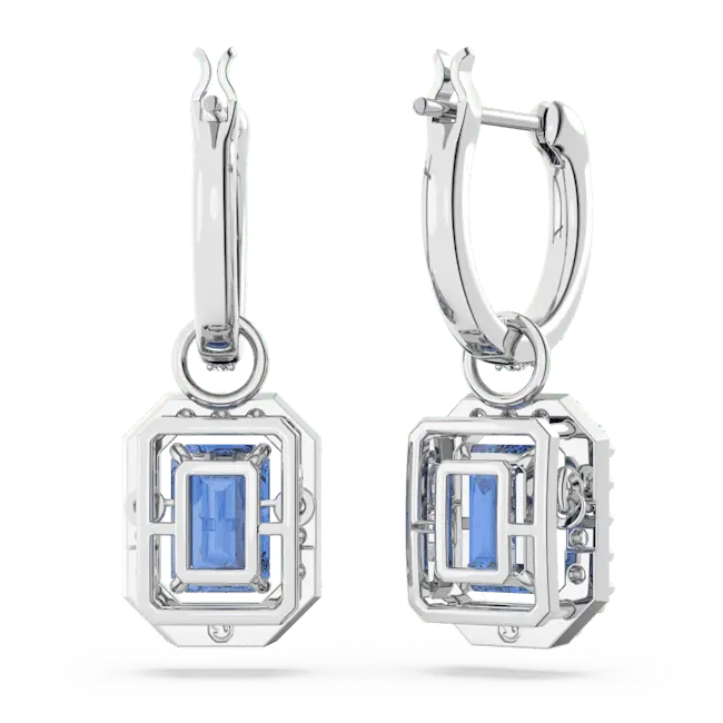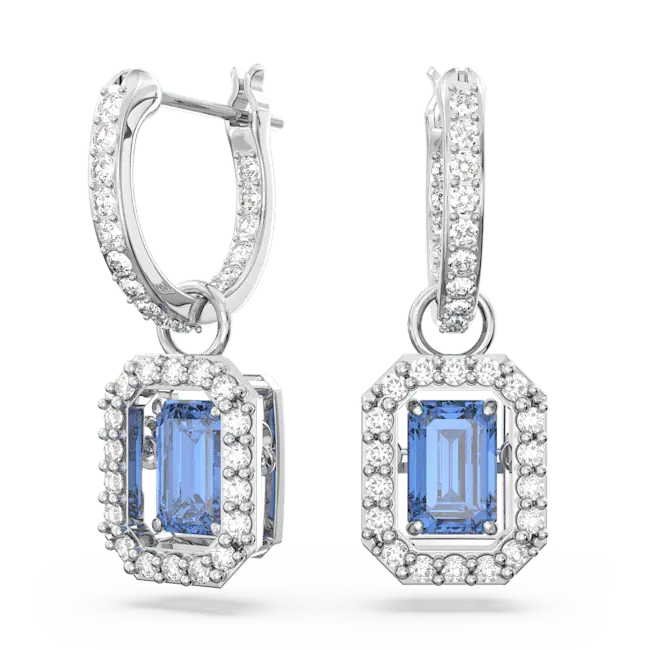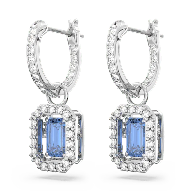 Swarovski Una Drop Earrings Octagon Cut Pave Blue Rhodium Plated