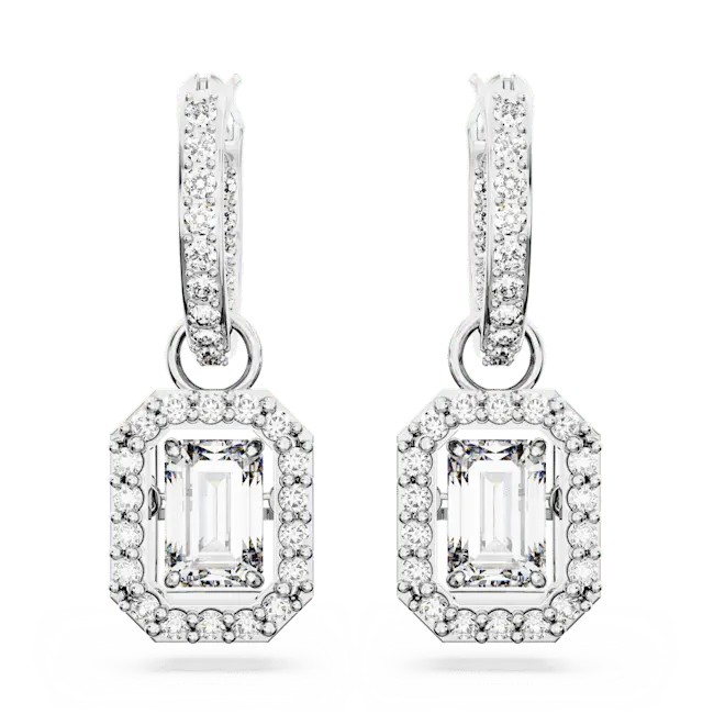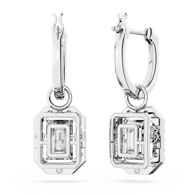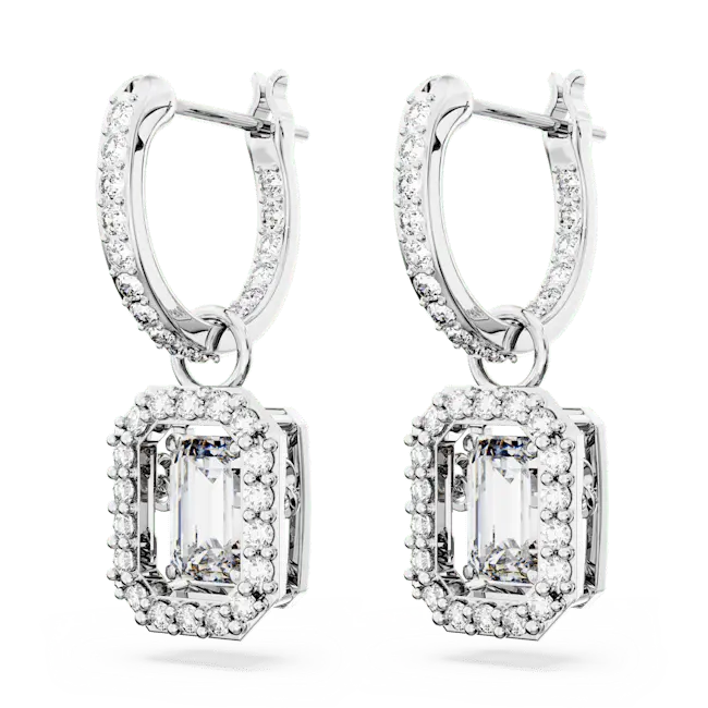 Swarovski Una Drop Earrings Octagon Cut Pave White Rhodium Plated