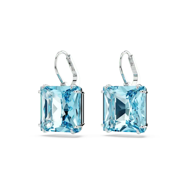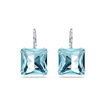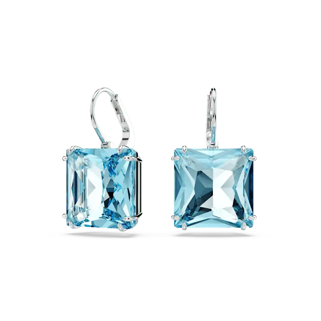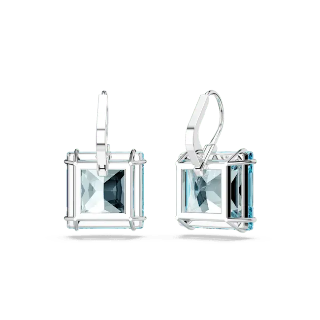 Swarovski Millenia Drop Earrings Square Cut Blue Rhodium Plated