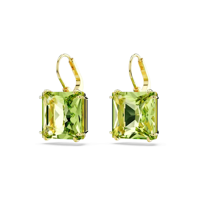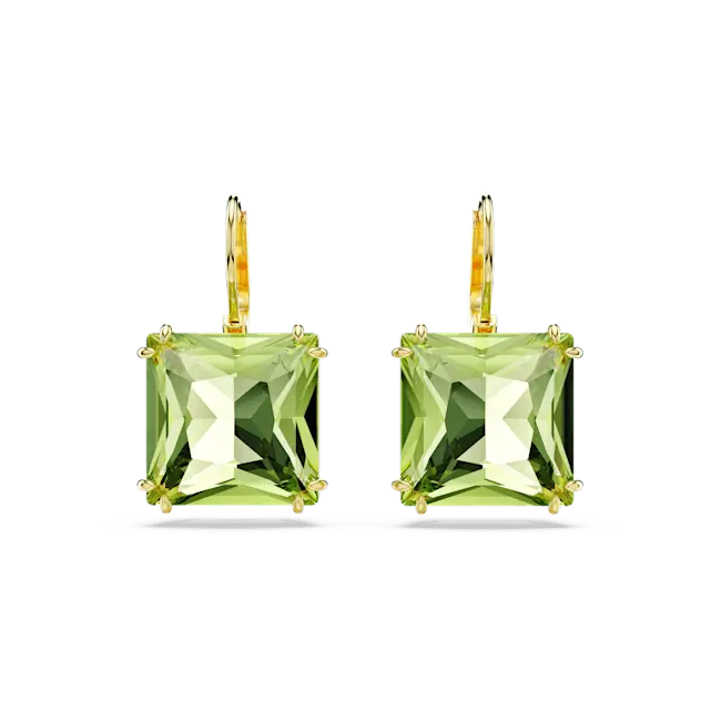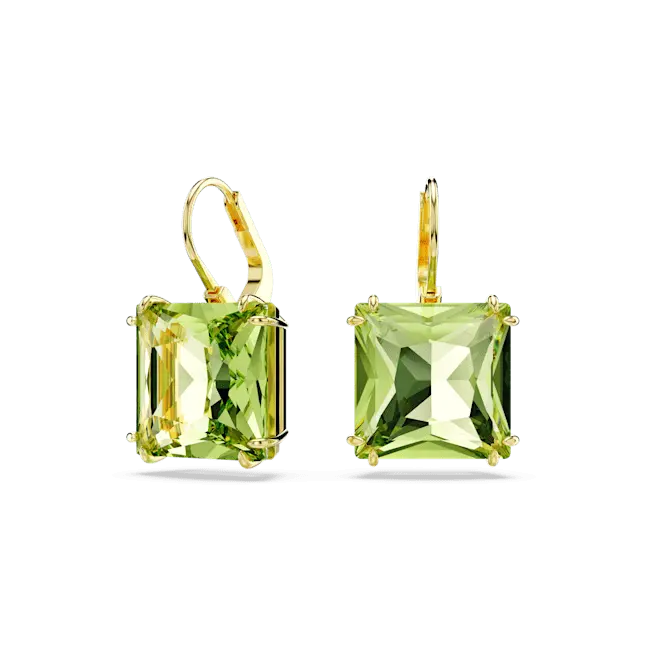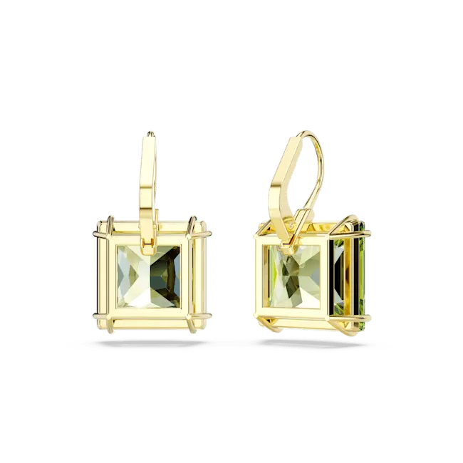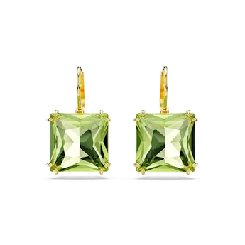 Swarovski Millenia Drop Earrings Square Cut Green Gold-Tone Plated