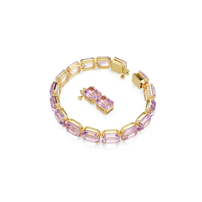 Radiating light and vivid colour, this brilliant Millenia bracelet demands attention. The all-round design is gold-tone plated and brought to life by a majestic decoration of octagon-cut crystals in a purple shade. A pure expression of joy that can be easily paired with a matching choker or necklace.