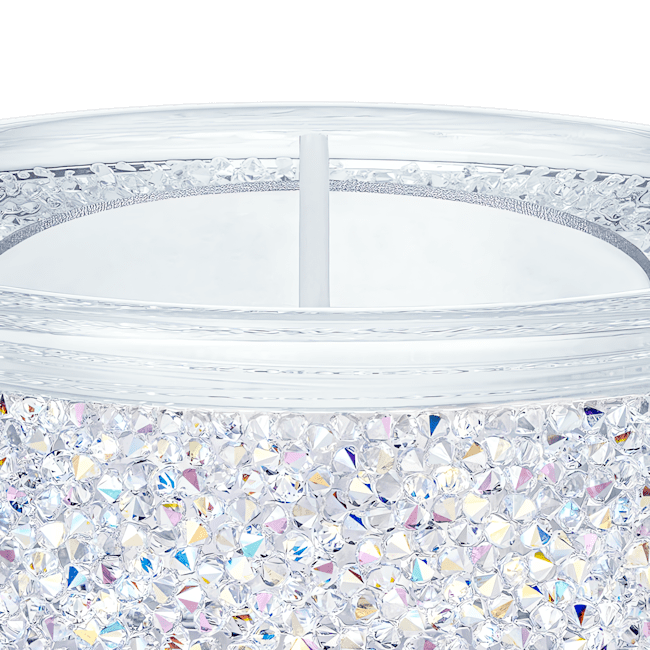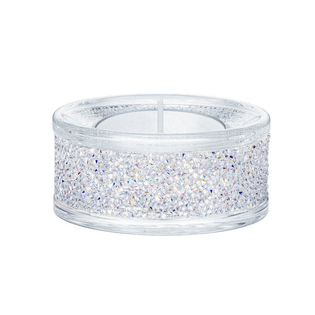 Embellished with over 1,500 Swarovski crystals set in the Crystal Rocks technique, this contemporary glass tea light holder shines brightly in our signature Aurora Borealis effect. Certain to add sparkle to any room; it will create a glamorous atmosphere, day and night. A perfect gift for a loved one. Decoration object. Not a toy. Not suitable for children under 15. Candle not included.
