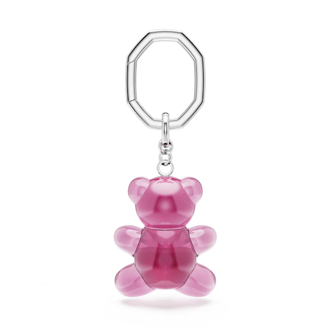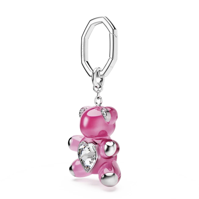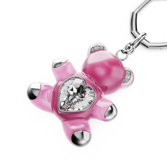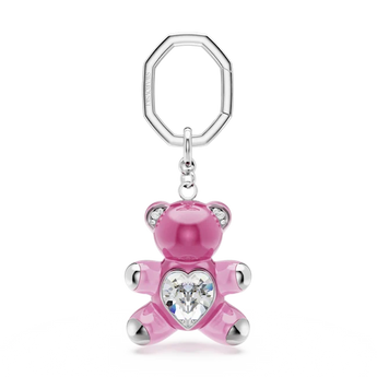 For a colourful dose of joy, this playful teddy key ring is crafted in lightweight pink resin with an octagonal link in rhodium plating. At its centre, a clear crystal heart injects additional radiance and romance. Gift this key ring to someone you adore for a very special occasion.