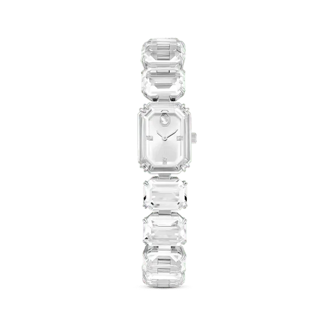 Inspired by the Millenia family, this eye-catching bracelet watch will elevate your everyday look. Expertly crafted from a row of clear octagon-cut crystals, it features a sapphire glass centrepiece and a stainless steel finish. It is water resistant to 50m. An elegant choice for solo styling or layering.